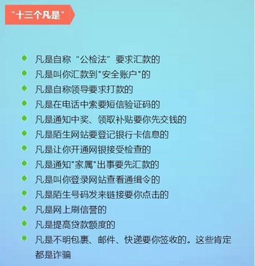 “十三個凡是”、“六個一律”遠離網絡詐騙